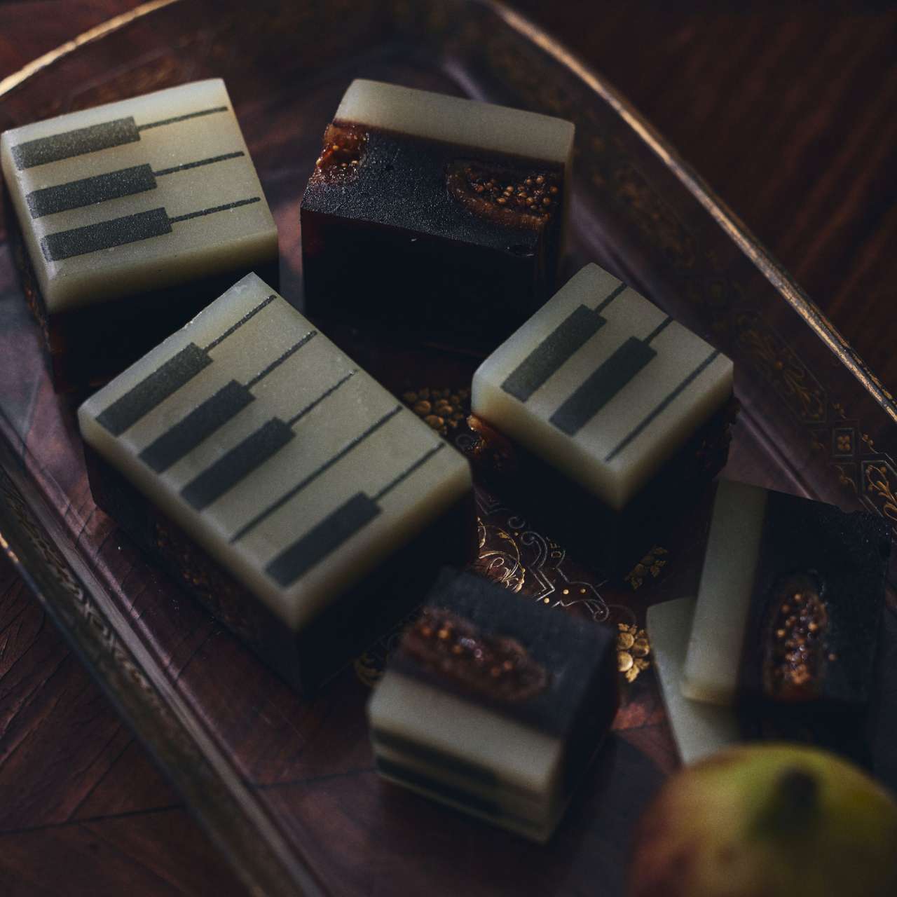 ジャズ羊羹の定番であり人気No.1の「クラシック」。国産小豆と沖縄県産の黒糖を使用した羊羹の中には、ワインに一昼夜漬け込んだドライいちじくがゴロゴロ。見た目も食感も楽しい洋風な羊羹です。